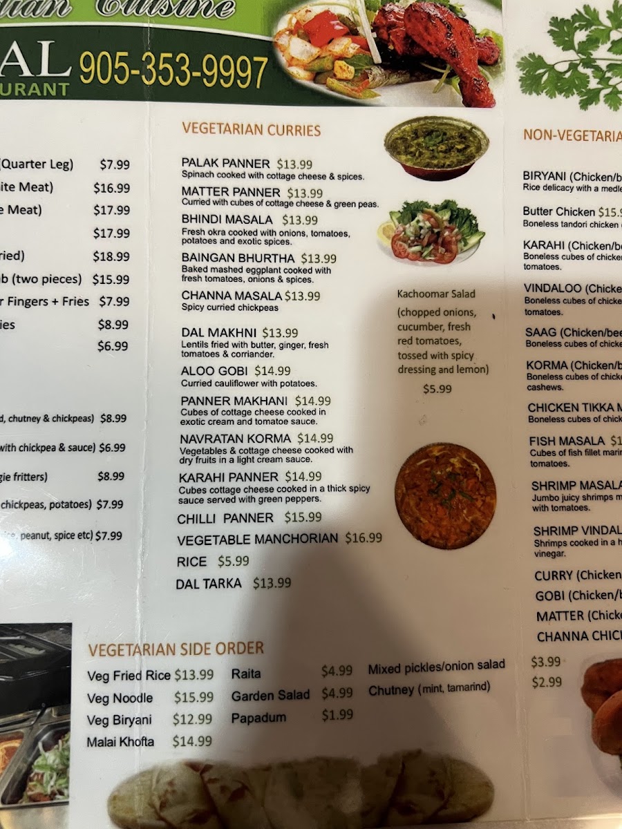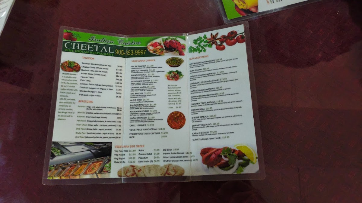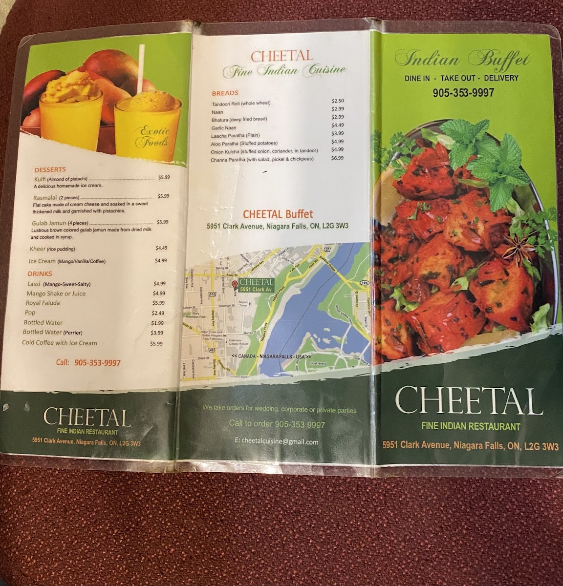 Welcome to Cheetal Indian Cuisine, where every dish is a celebration of vibrant flavors and rich traditions. Nestled in the heart of Niagara Falls at 5951 Clark Ave, we invite you to explore a menu that boasts a delightful array of Indian specialties. From the crispy and savory BHEL POORI and the tangy PANI POORI to the comforting VEGGIE SAMOSA and irresistible ALOO TIKI, our offerings are sure to tantalize your taste buds. Don't miss out on our unique twists like Fish and Chips and Chicken Fingers, alongside classic favorites such as BHALLA PAPRI, DHAI POORI, and Pakoras. Whether you're a lifelong fan of Indian cuisine or a curious newcomer, there's something for everyone at Cheetal Indian Cuisine—come hungry and leave happy!